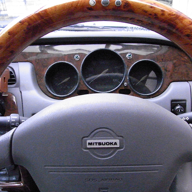 左がメーターとステアリング。NISSANマークの原型を留め過ぎてるMITSUOKAアピールが素敵です。