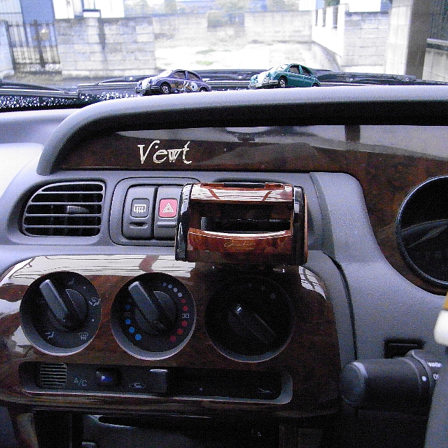 右はエアコンら辺。『Viewt』の『 i 』の棒部分がありません。認定中古車として購入した時からこんなだったので、他オーナーさんのHPで内装の写真見るまでこういうモノだと思ってました。まだまだ愛が足りないって事でしょうか。