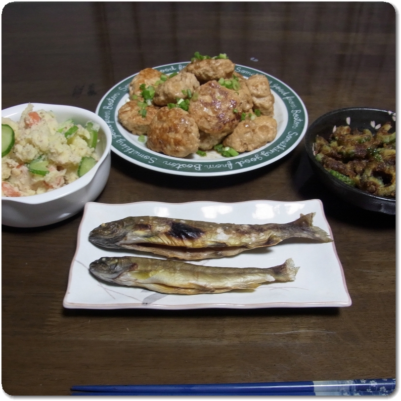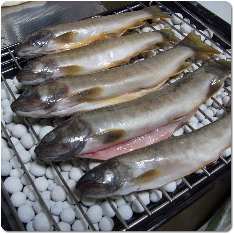 地元(渋川)の友達が冷凍して持ってきてくれたんだとか。一昨日は小さな5,6匹を唐揚げ、昨日は残りを塩焼きに。