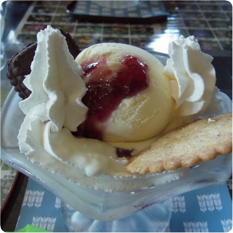 暑いんで冷たいデザートも。ブルーベリー&ヨーグルトパフェ。冷え冷えでちょっと固くなった生クリームが幸せを運んでくる。うまうま。