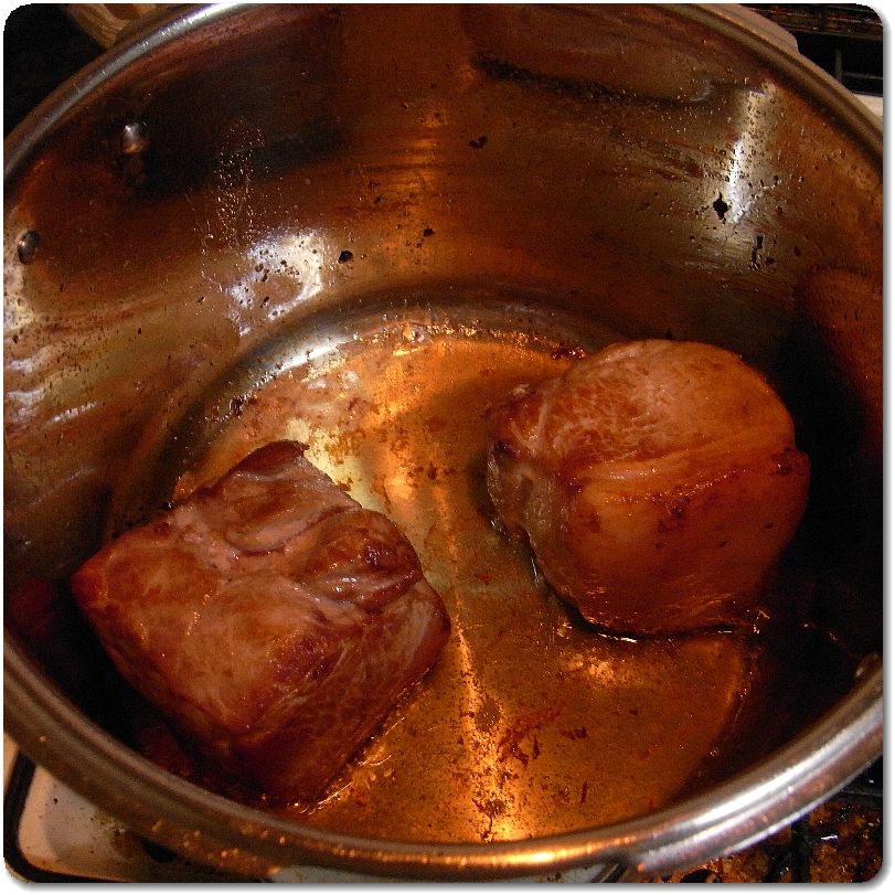 残りの2つは油を引いた圧力鍋で焼き目をつけます。やり過ぎると肉が固くなるので注意。