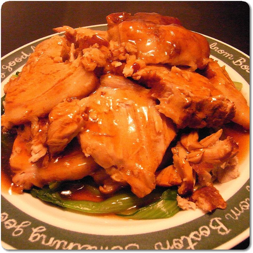 肉を適当に切って盛ったら、煮汁に水溶き片栗粉でとろみをつけたのを掛けて完成。崩れてるのは妹につまみ食いされた肉塊のなれの果て。
