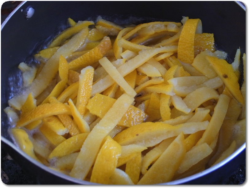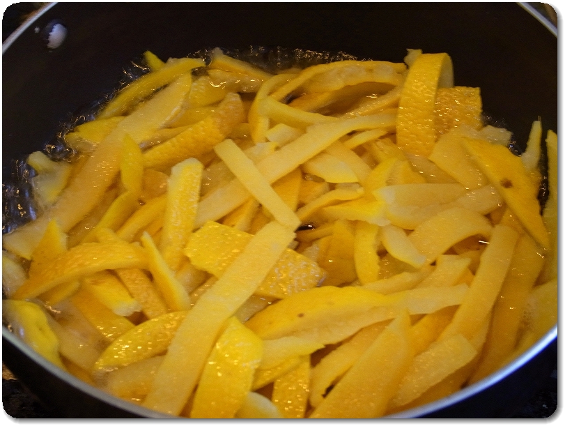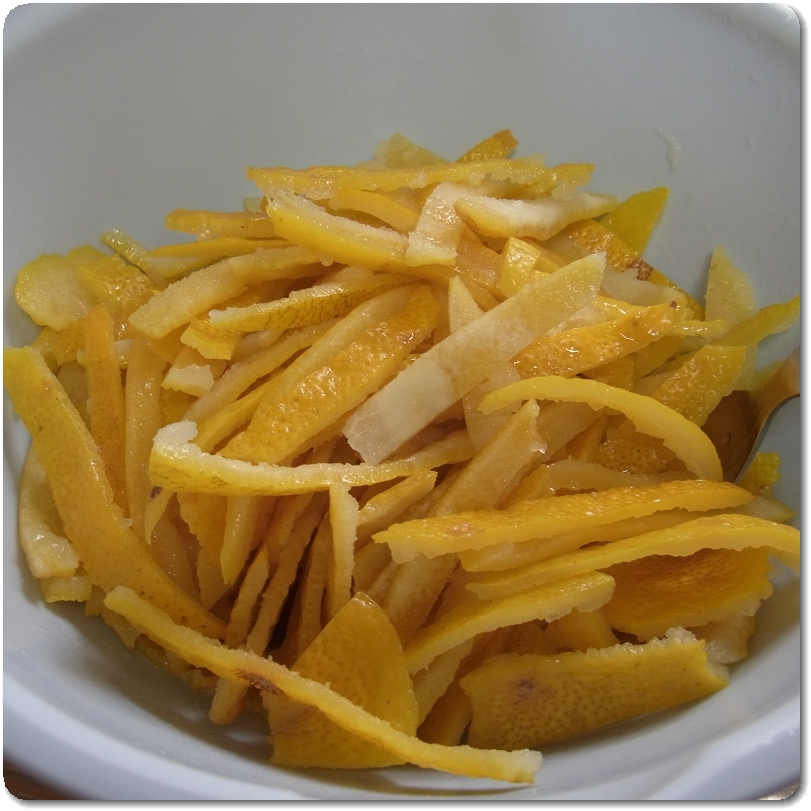①柚子をよく洗い、適当に剥いた柚子の皮を前日から一晩水に漬けておいて白いワタみたいなんをふやけさせる。一緒に苦味も抜けて一石二鳥。