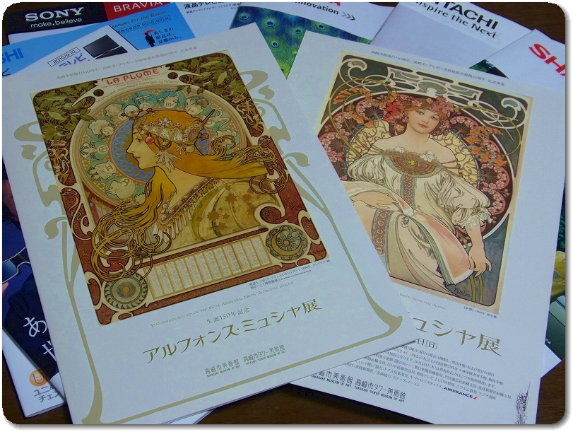 帰り際、ポスターと一緒に生誕150周年ミュシャ展(この一連の催し)限定の作品集(2300円)を買おうか迷ったけど、ほとぼりが冷めた頃出版元に問い合わせれば在庫ありそうだから中身じっくり眺めて買わないでおいた。今思えば買っとけば良かった気もする。
