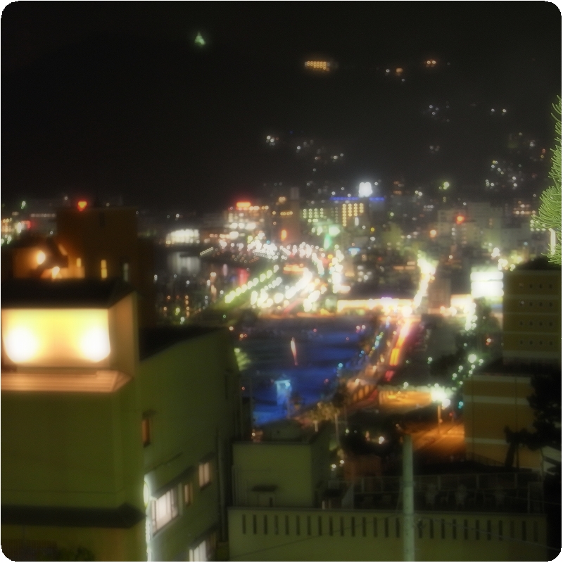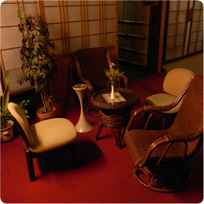 夜景がブレまくりだったんでリサイズついでにソフトレンズ加工。ほら、雰囲気も出るしさ。赤絨毯のサロン?ラウンジ?なんつーの?がこの宿の空気をよく表してる。その時代を生きた訳でもないのに懐かしくて、でも現実味が無いっていうか。