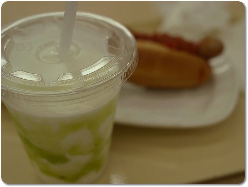 フードコートのドトールなんでテーブルがちゃちいけど、まあ気にしない。朝から何も食べてなかったのでサルサドッグもいただきますっ(0∀0人)