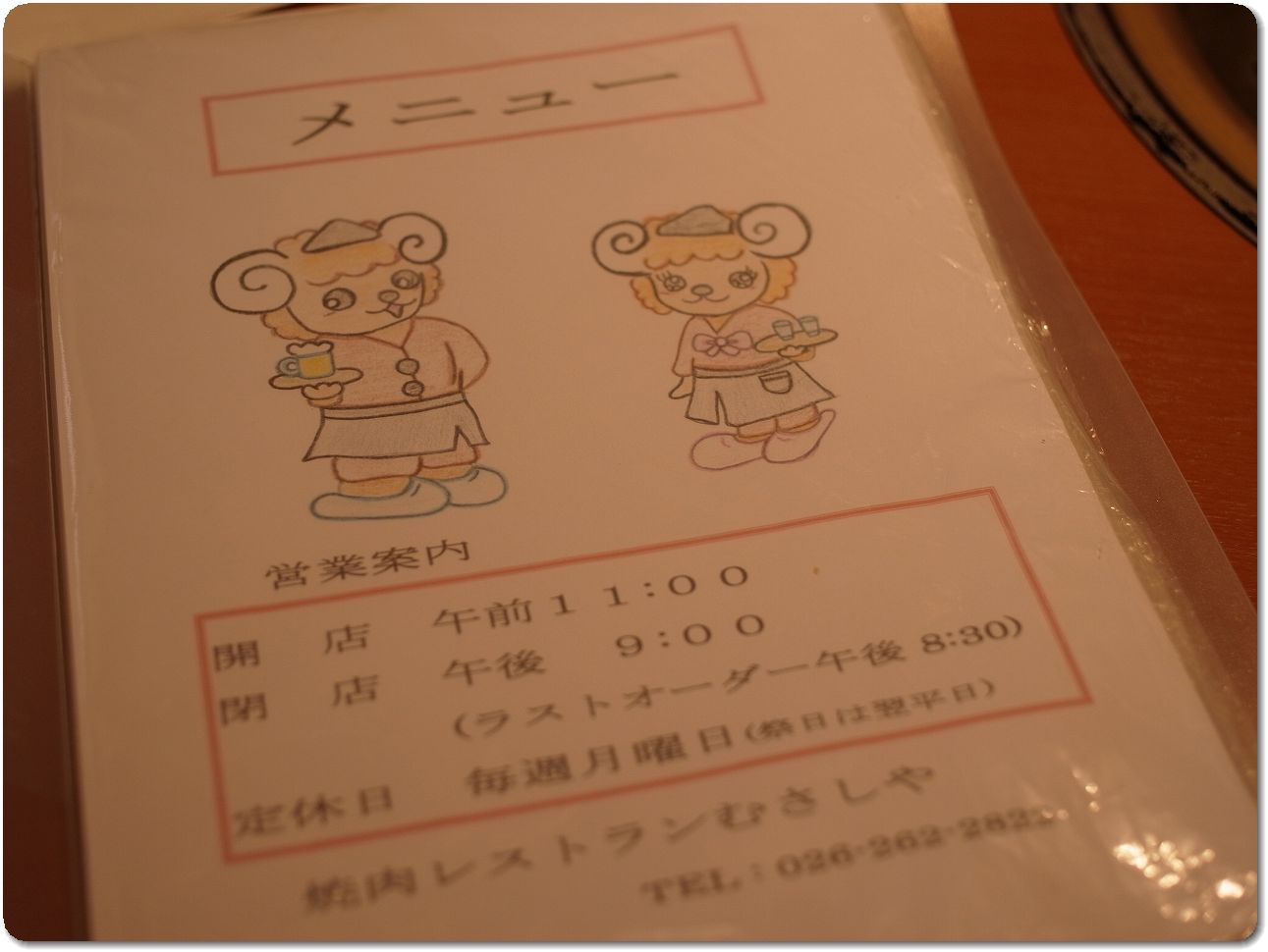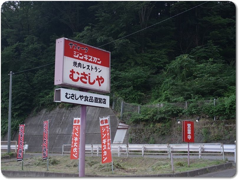 信州新町にある老舗ジンギスカン屋さん、「むさしや」。この辺は昔からジンギスカンが有名なんだって。