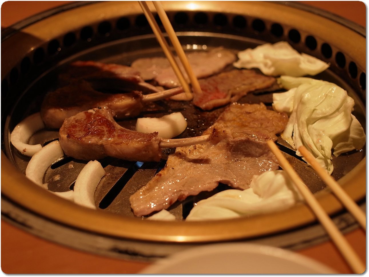 ジンギスカンってもやしとかキャベツたっぷりの北海道のアレを想像してたけど、羊肉を使った焼肉って云ったほうが正確かな。