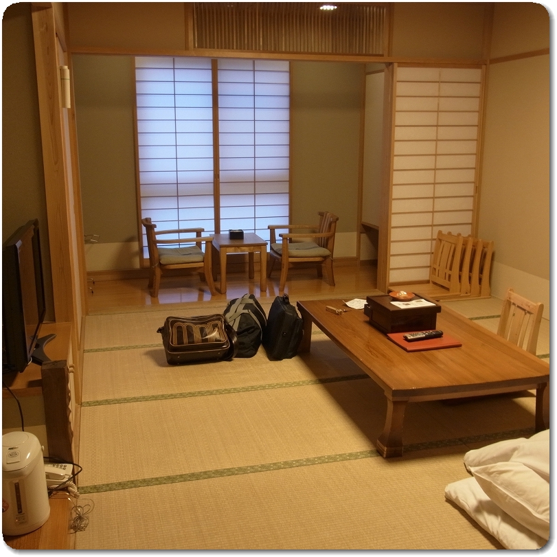 宿泊先の国民宿舎。4人部屋相当を一人で使えて素晴らしく広い。なんたる贅沢。