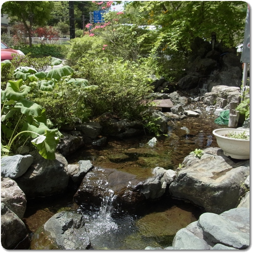 まあホントにどこへ行っても川の良い匂いがして、山の空気が大好きな我夢には堪らない。お土産屋の敷地をちょろちょろ流れてる水ですら綺麗。川から引いてきてるんだろう。