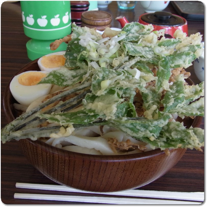 コシアブラだかの天ぷらが乗ったうどんは驚愕のボリュームで、夕飯ロクに食えなかった。