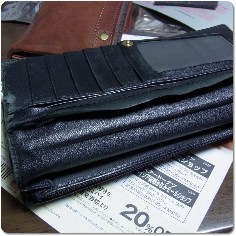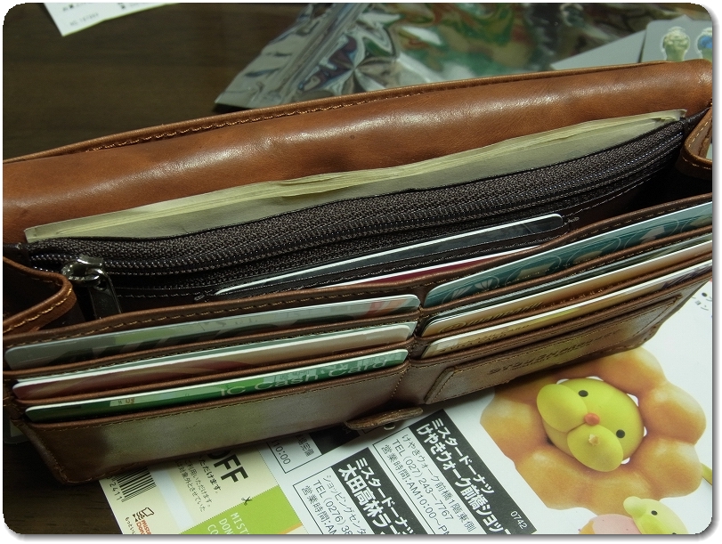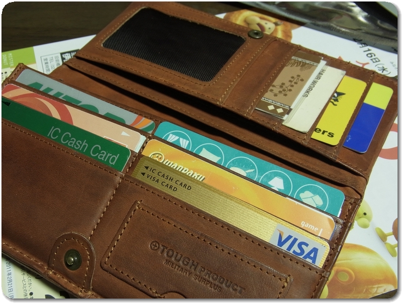 使い易いと評判のTOUGHの長財布。決め手はカードポケットの多さ。早速中身を移し替える。